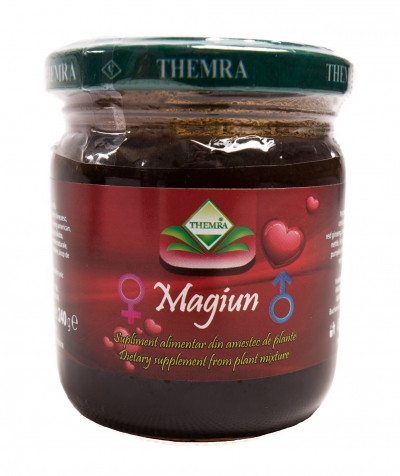Magiun care poate avea efect afrodisiac. Pe baza de extracte naturale, magiunul are un efect benefic asupra vietii intime prin intensificarea circulatiei sanguine in zona intima si prin sensibilizarea acesteia.